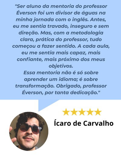 Mais do que ensinar gramática e vocabulário, minha missão é reacender a vontade de aprender em quem um dia achou que não conseguiria. Muita gente desiste por achar que é difícil, que não tem dom ou tempo. Eu estou aqui pra te mostrar que aprender um idioma pode transformar sua vida — e eu sou a prova viva disso e te mostrarei com resultados que é possível, fugindo do método tradicional.